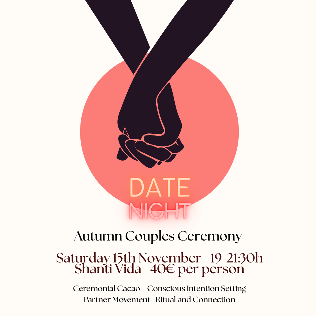 How is this energy manifesting in your relationship? Join us at Shanti Vida from 15-17.30 hrs on Saturday 15 November to invite this energy in to your coupledom. Release stale energies and the blocks that are preventing your joint evolution, and consciously create with your partner, both intentions and nourishing practices to support and sustain your bond throughout the winter months.